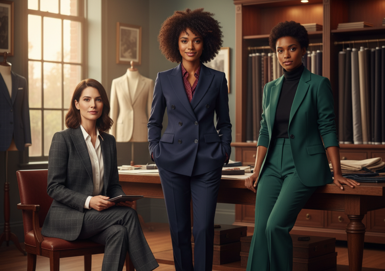 At LHVR Bespoke, we celebrate the art of women’s tailoring with elegance, strength, and individuality. Our bespoke womenswear includes finely tailored suits, chic blouses, structured blazers, sophisticated tuxedos, and stylish skirts — crafted to complement every occasion.